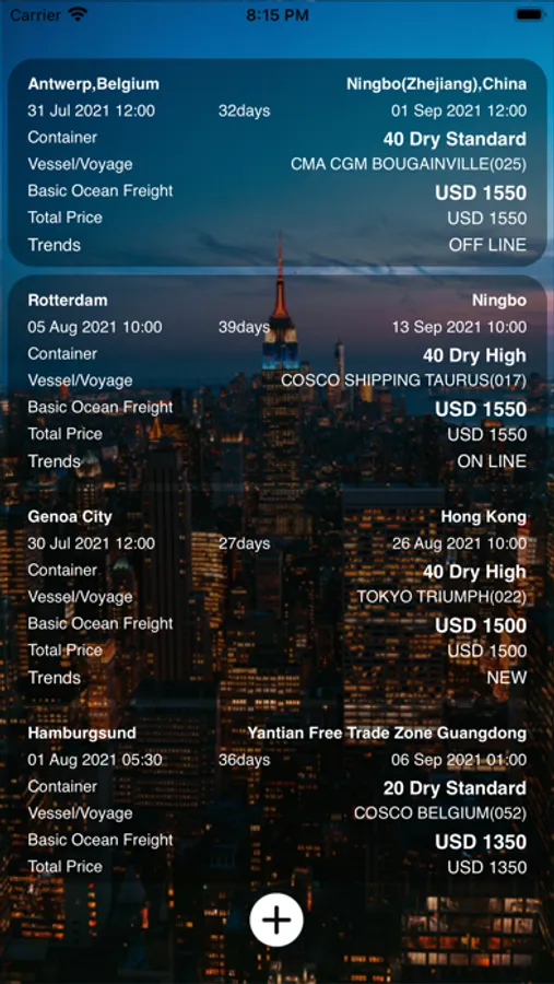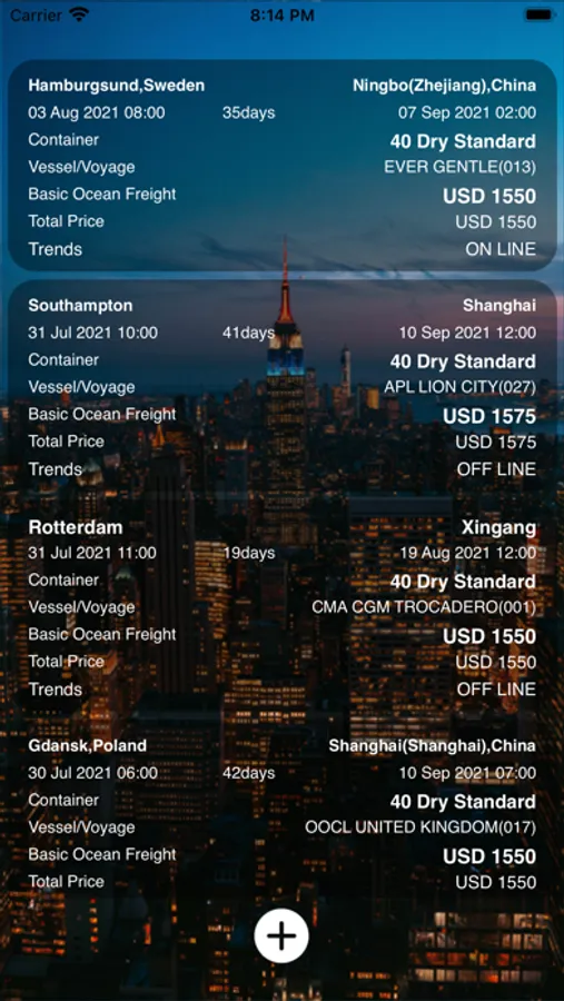 1.各船会社のウェブサイトに登録する必要がないなら、いつでも関連の海運価格状況を確認できます。