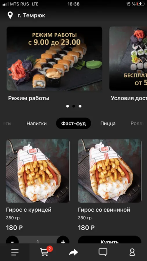 В нашем приложении вы можете заказать доставку еды домой и в офис.