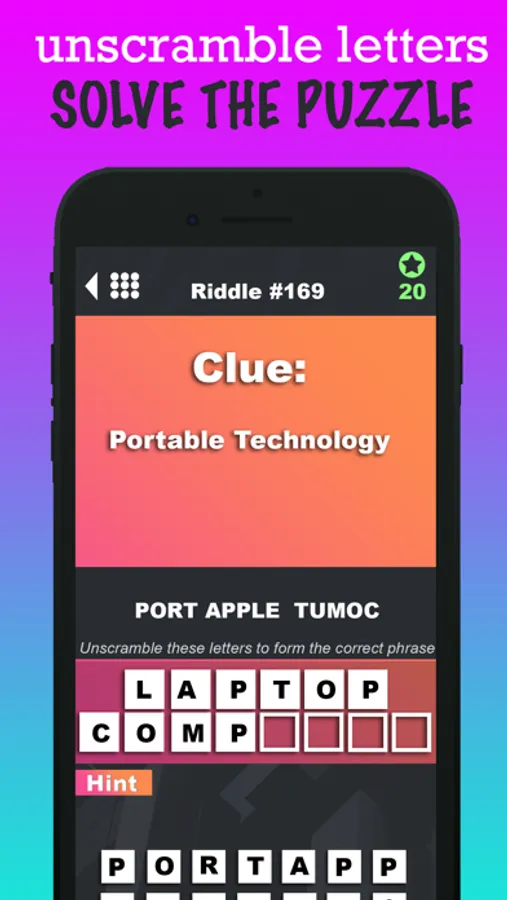 This Riddle Trivia Puzzle game contains hundreds of challenging, fun, and tricky brainteasers. Each riddle and puzzle is handpicked for the right balance of fun and challenging.