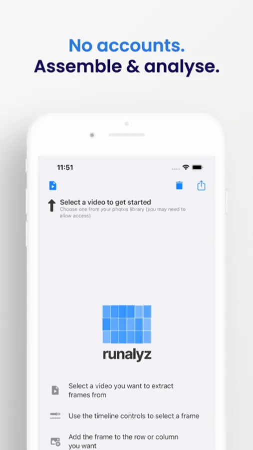 Easily capture and combine frames from videos into a single storyboard, ideal for analysis of running or sporting activity.