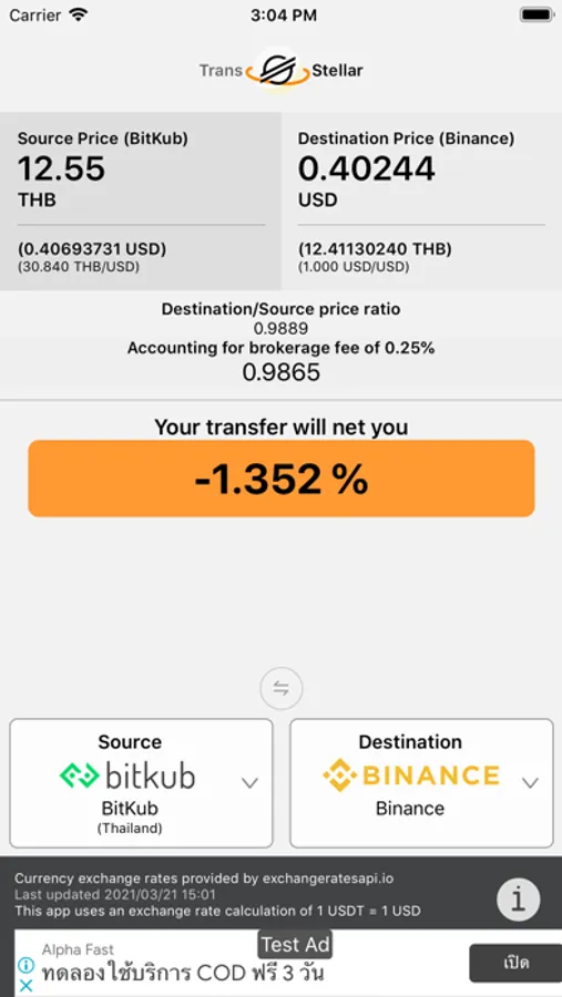 This app helps people who use Stellar for the purpose of inter-exchange money transfer decide, if a transaction via Stellar is better value compared to buying via fiat directly on a major exchange.