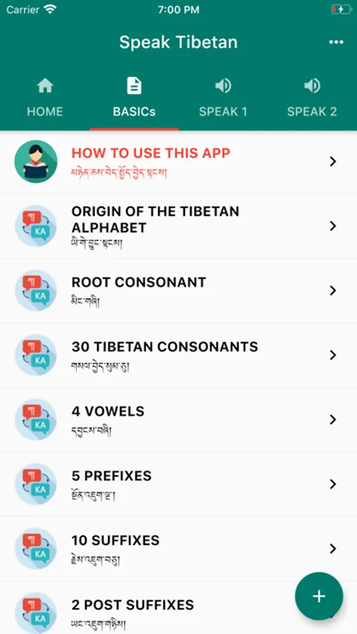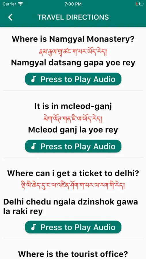After my tibetan prayer app release in iOS, people started requesting me that I should make one for tibetan language because there are many tibetans who are having difficulties speaking tibetan as well as there are many people who like to learn tibetan language as tourists or if they wish to read buddhist scriptures. So I thought why not make an app to learn tibetan language since there is no any app that teaches you basic tibetan grammar and conversations with audio. So this app has following features.
