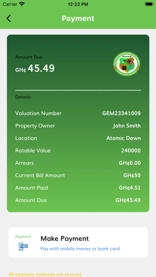 The GEMA Property App also allows property owners to settle property debts due to the municipal assembly. The App supports three modes of settlements: mobile money, card payments and USSD short code.