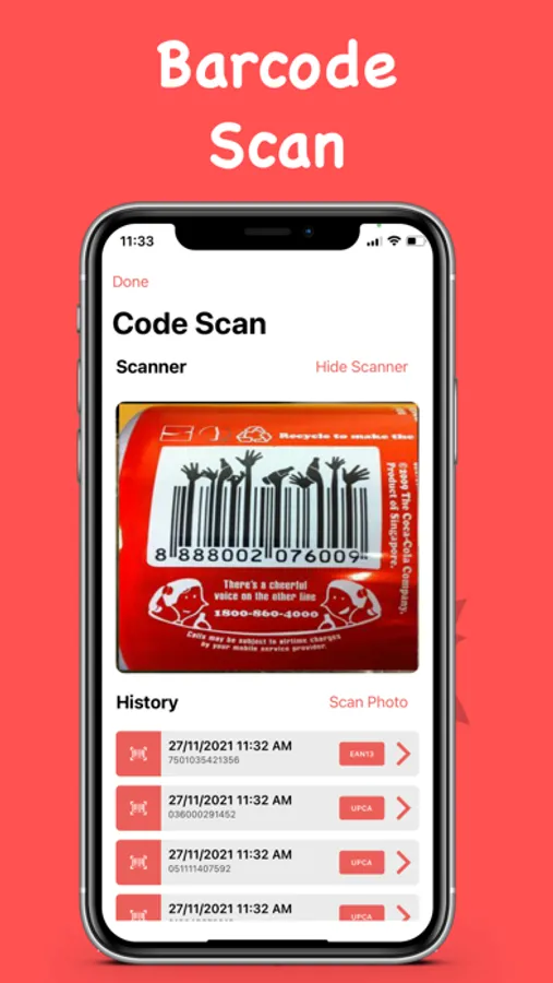 - Scan 15+ type of Bar code and QR codes