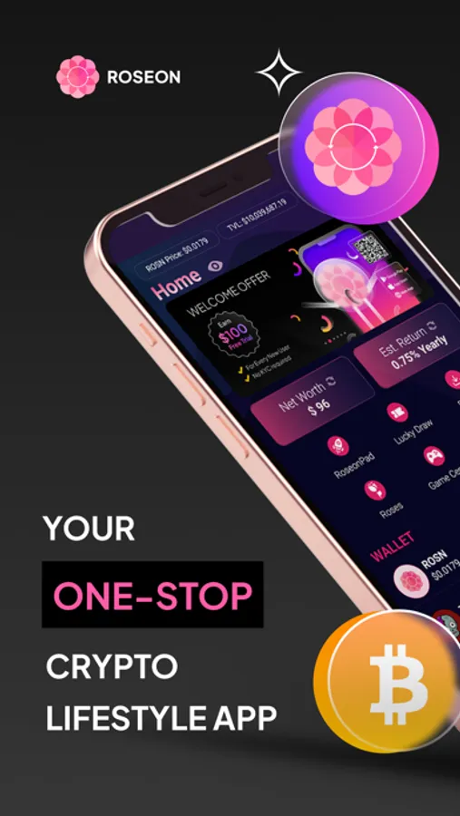 Roseon Mobile App, a one-stop crypto lifestyle app with Play To Earn Games, DeFi and LaunchPad.