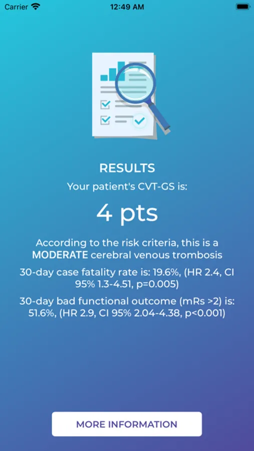 This app will let you calculate the CVT score for an hypothetic patient. It's based on the score defined in the article "A Practical Score for Prediction of Outcome After Cerebral Venous Thrombosis" by Barboza MA, Chiquete E, Arauz A, Merlos-Benitez M, Quiroz-Compeán A, Barinagarrementería F and Cantú-Brito C.