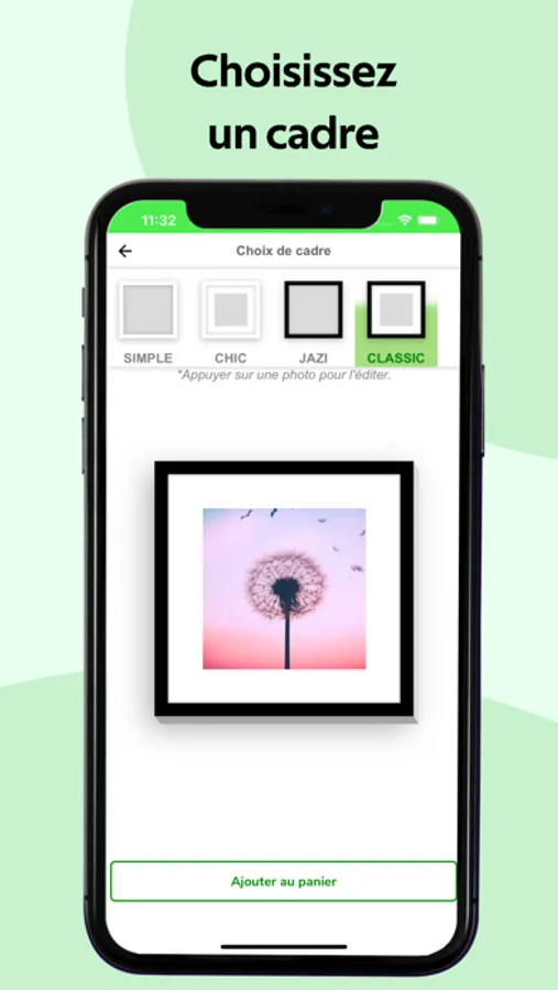 Sélectionnez vos photos ensuite choisissez votre format de cadre préféré puis commandez.