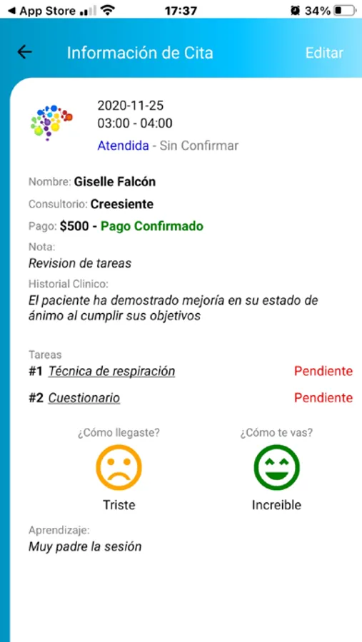 La aplicación es capaz de compartir agenda con varios administradores para evitar empalmes de citas en un consultorio.