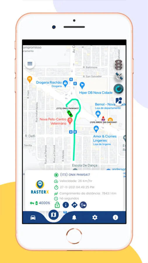 Se você é cliente Raster X que tem o serviço de Rastreamento contratado, com o aplicativo é possível, rastrear seu veículo, e muito mais...