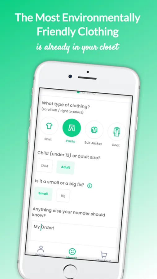 Upload a photo of the item you’d like to mend, get up-front pricing, and pay in the app.