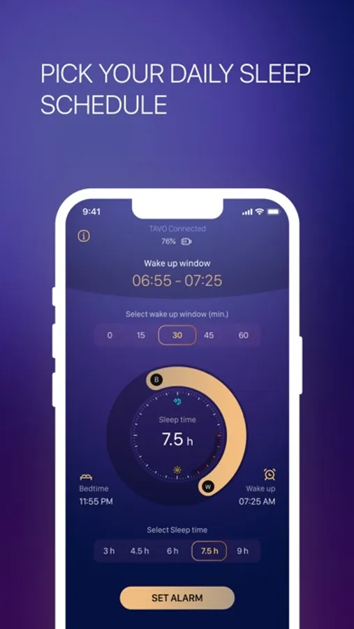 Smart Alarm: Pick your sleep time or wake up by a certain time, and TAVO will wake you up in a lighter sleep stage, helping you pick the best time to wake up with predicted sleep cycles.