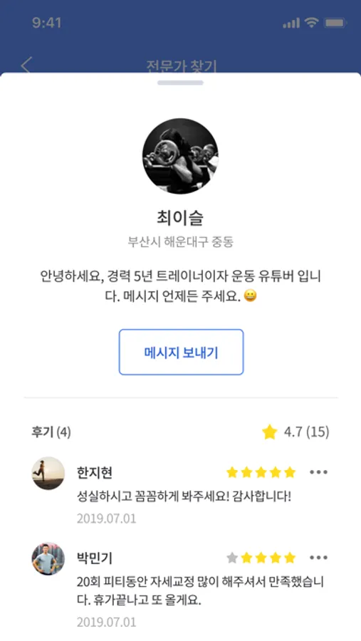 * 주변에 있는 원하는 운동 전문가와 연결