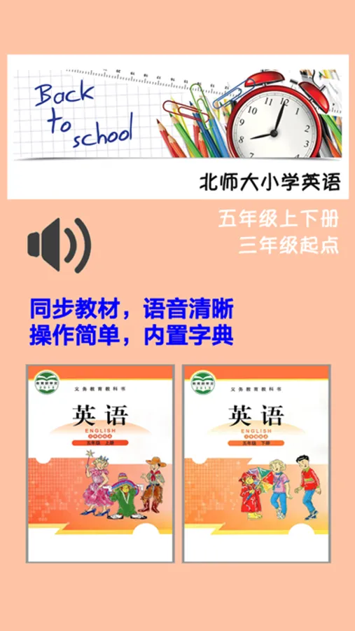 此App包括北师大版《小学英语五年级上下册》全部课程内容。