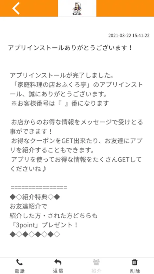 おふくろ亭のアプリをSNSを通じてお友達に紹介する事ができます。