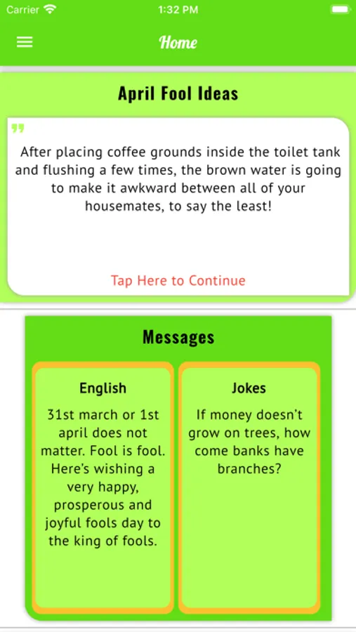 This app brings you the best collection of Jokes, Harmless Prank Ideas, Wishes ,Images, Gifs, Messages, Quotes, Status, Meme, Greetings e-cards of April Fool .