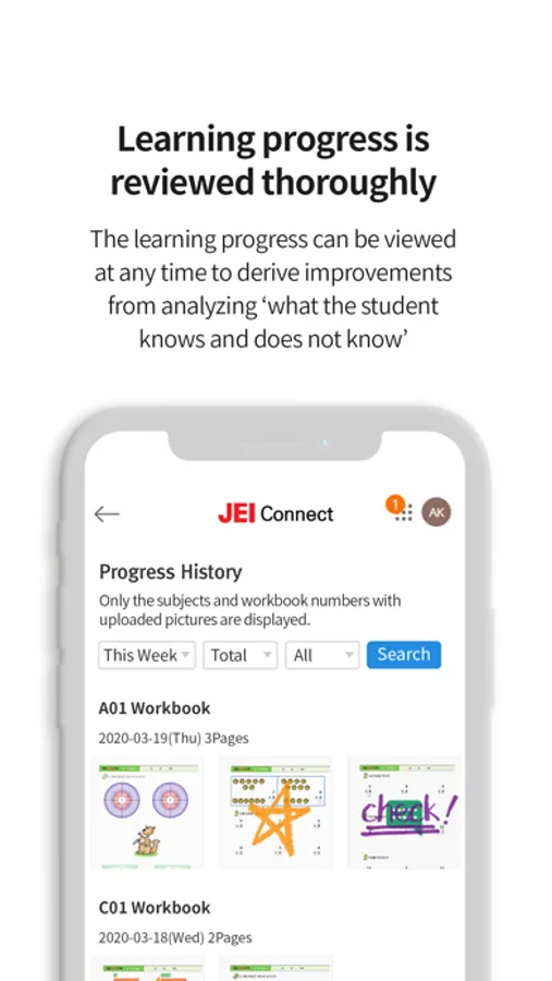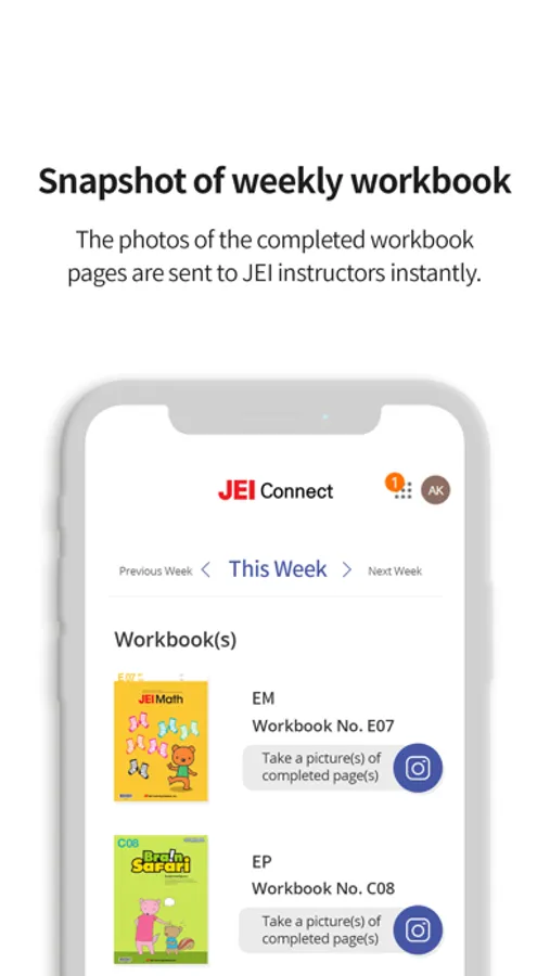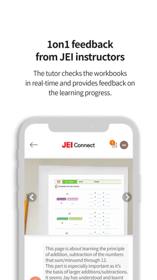 “JEI Connect” allows sharing the photos of the completed workbooks and 1 on 1 live consultation with your JEI instructors.