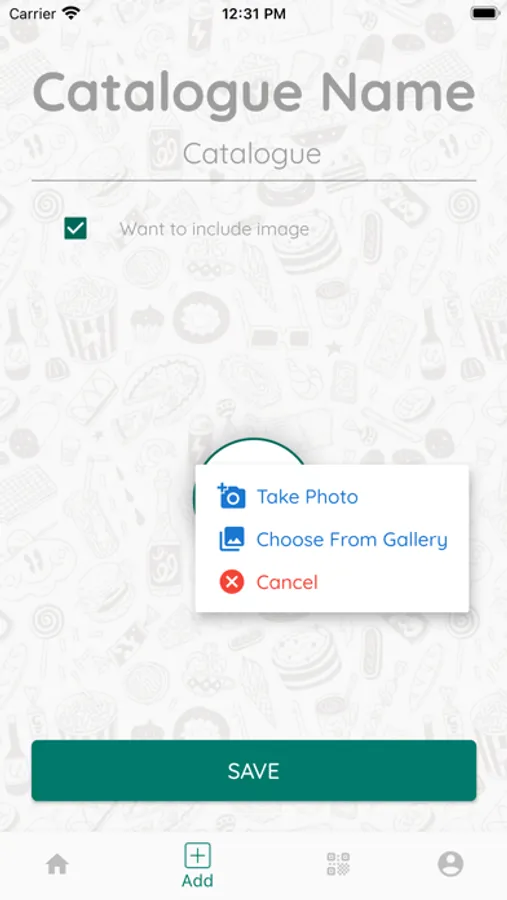 4. On Add(second bottom navigation) tab you can add catalogue by inserting title or image