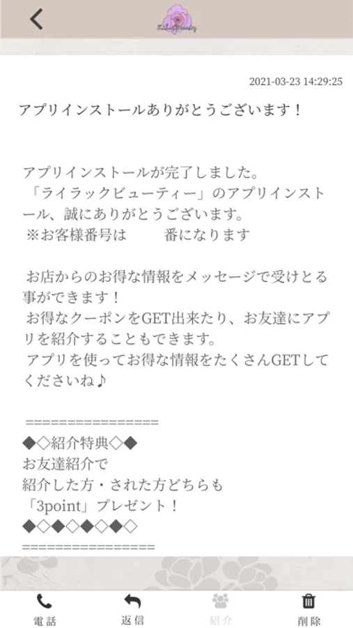 Lilac BeautyのアプリをSNSを通じてお友達に紹介する事ができます。