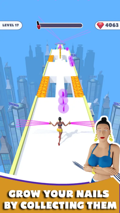 Make your nails longer by collecting them. Slide down the nail file poles! There are obstacles on the way, watch out! Do a headstand and use your nails like legs and pass the pools. At the end of the level pop them nail polish bottles and get extra coins!