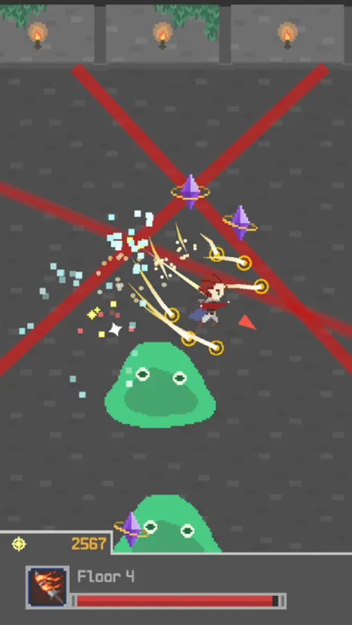 ・回転するマーカーに合わせてタップして移動、敵にぶつかって自動攻撃