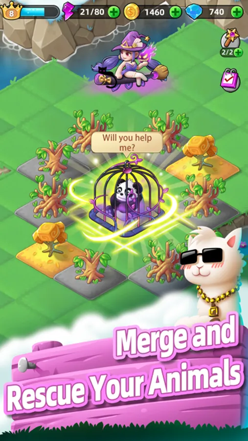 Merge Animals is a kind of casual puzzle game that adopts merged gameplay, whose goal is to merge items by various skills and player’s wisdom, defeat the witch, rescue all the small animals, build castles for animals, and regain their paradise.