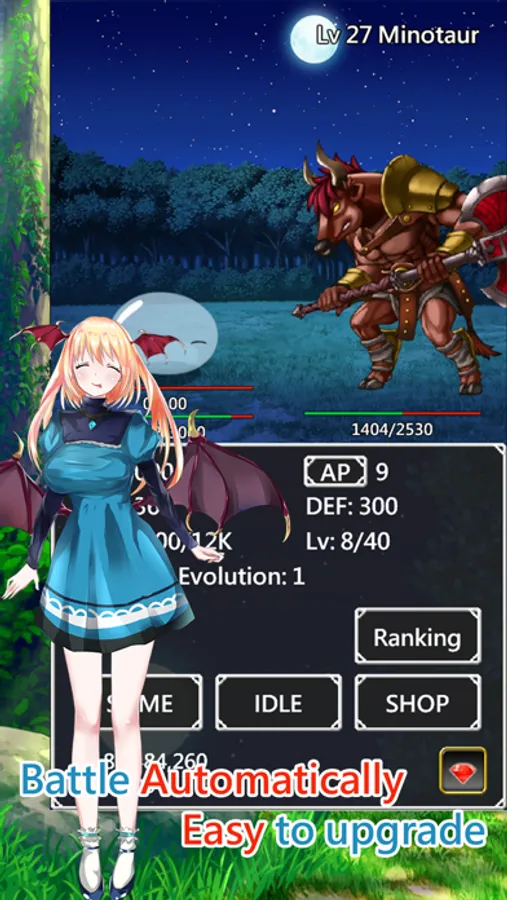 As a slime, you have the ability to evolve and you can choose different evolutionary paths. Also , there are different enchantments of equipment, use them to defeat powerful enemies!