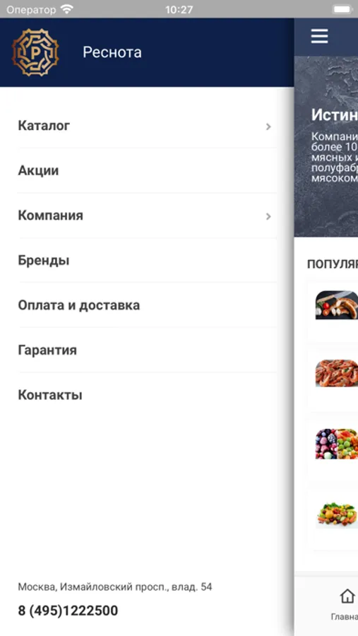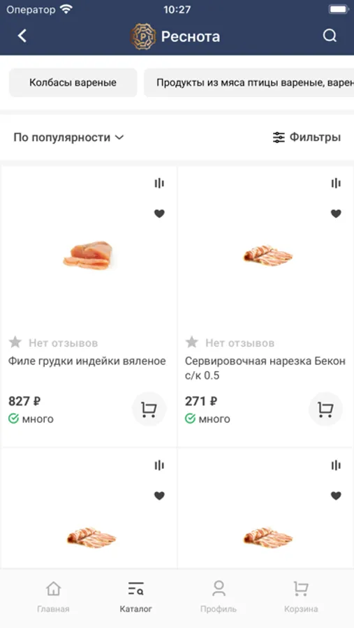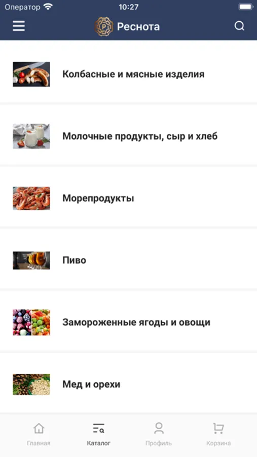 Компания «Реснота» является производителем и продавцом колбас и мясных деликатесов. А также широкого ассортимента продукции: рыба, орехи, сыры, кондитерские изделия, соки, воды, крафтовое пиво, консервы, замороженные овощи и ягоды, икра.
