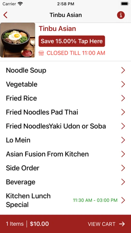 1. Get the Tinbu Asian’s Online Ordering app and conveniently order from anywhere on your iPhone.