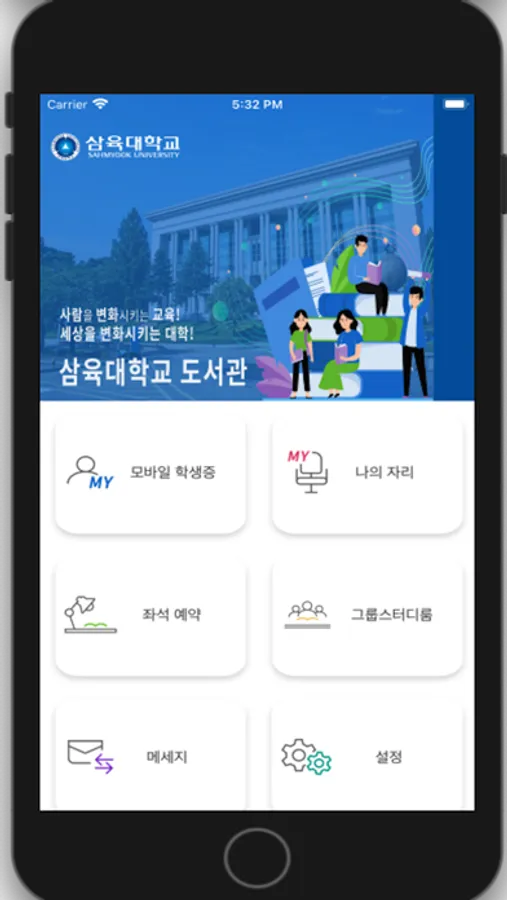 삼육대학교 도서관 이용자들을 위한 어플리케이션으로 아래와 같은 서비스를 제공합니다.