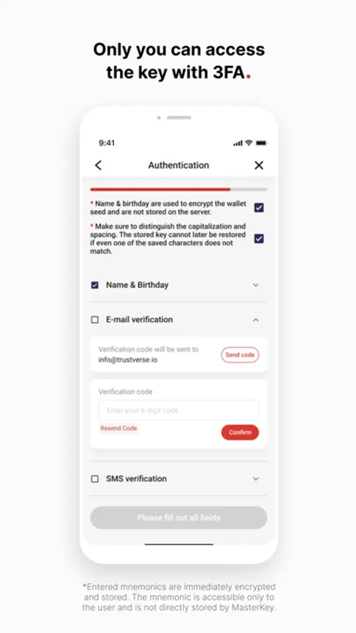 3. Store and recover your wallet securely with a 3-factor authentication verification