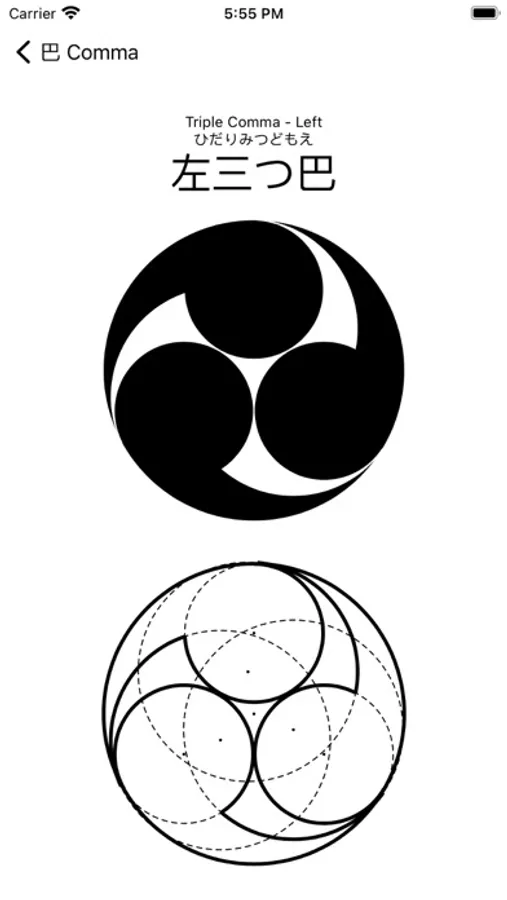 This application is a list of simple Japanese emblems, family crest or Mon. All Mon in this app are basically drawn using math geometry. Some of the Mon can be deformed by changing value using the selector.