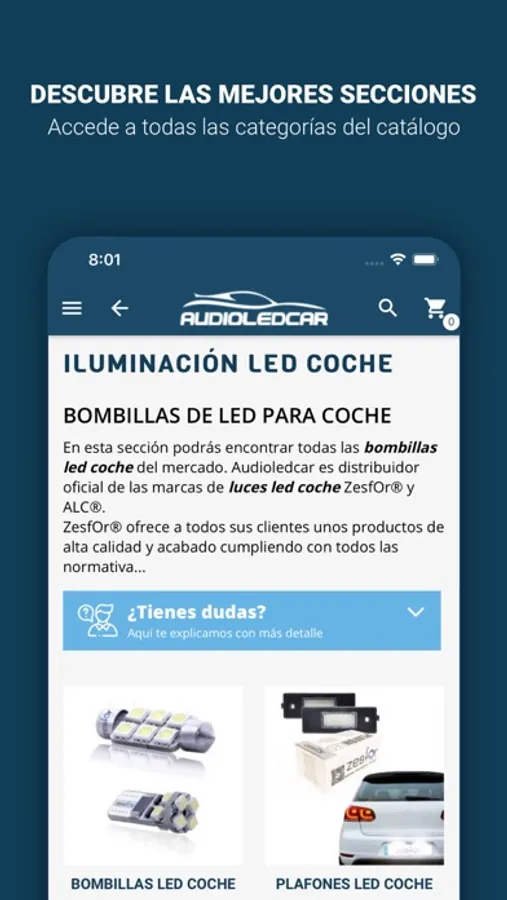Historia: El grupo Audioledcar es una empresa Española dedicada a los accesorios para coche fundada en Madrid hace más de 12 años especializada en soluciones integrales de accesorios tunning y recambios para el sector de la automoción.