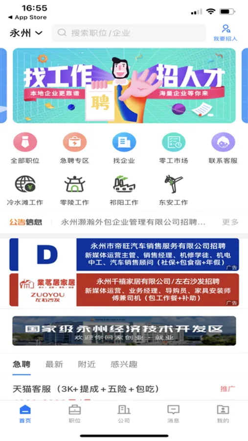 永州三湘人才网成立于2007年是永州市冷水滩三湘人力资源有限公司旗下招聘网站,致力于为求职者提供永州本地优质招聘信息、为企业提供招聘渠道,帮助每一个求职者在永州三湘人才网找到合适的工作!
