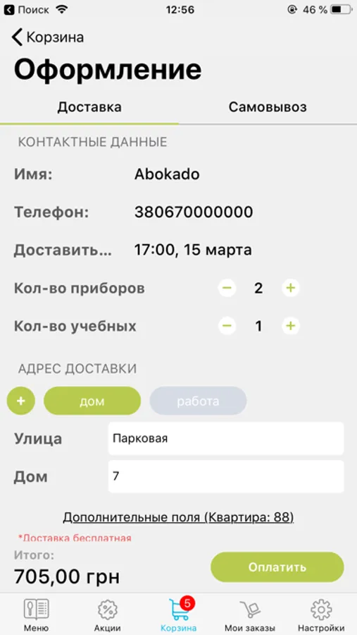 • встановити час, в який ви б хотіли забрати замовлення з нашого закладу;