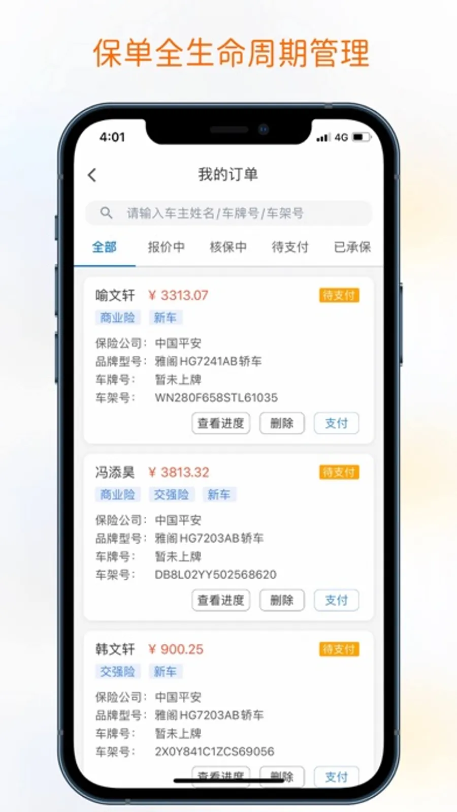 “易保车商云”服务于汽车经销商,主机厂,专业的保险中介公司,致力于打造一个合规、便捷、智能、全面的移动保险业务平台,解决用户日常作业中的各种业务及管理难题。