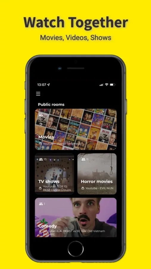 Don't like the shows on the play? Create your private room and invite your friends there! You can build your community around shared interests and passions.