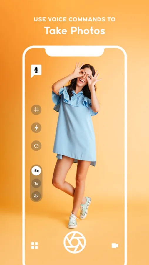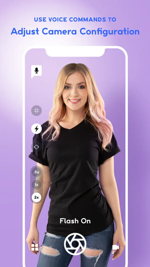 * Use voice commands to adjust camera configurations such as reverse the camera view, switch to video, switch to image capture, toggle flash ON/OFF, etc.