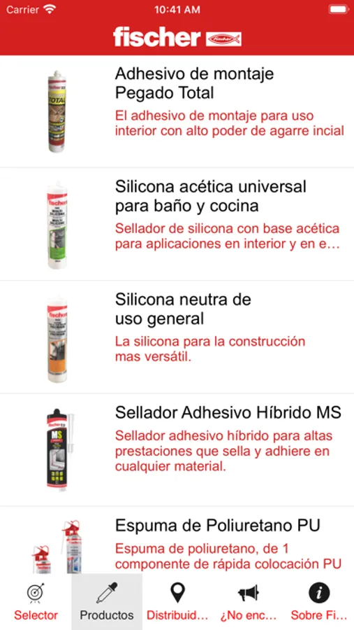 La app "fischer buscador de selladores" ofrece soporte a los usuarios para determinar qué sellador, silicona o adhesivo es el correcto para utilizar en cada proyecto.