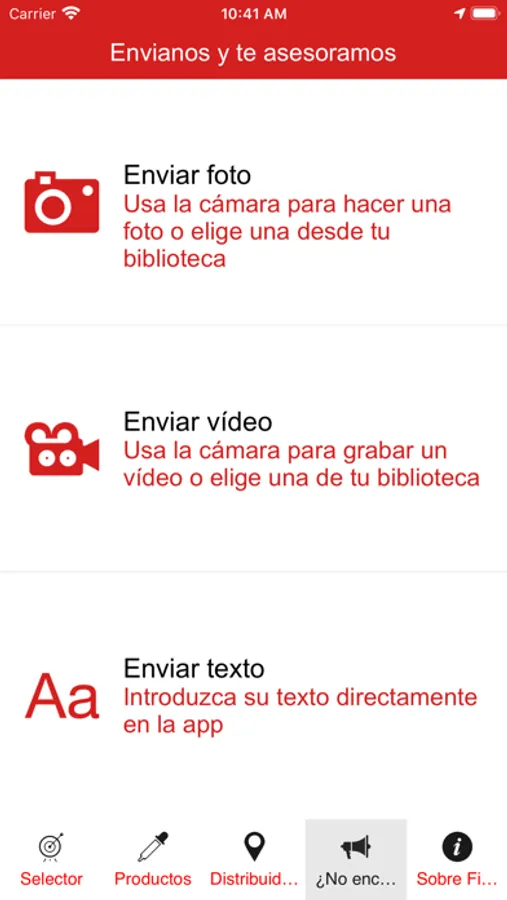 En pocos y simples pasos, el usuario indica qué trabajo desea realizar, y la app le recomendará el producto más adecuado.