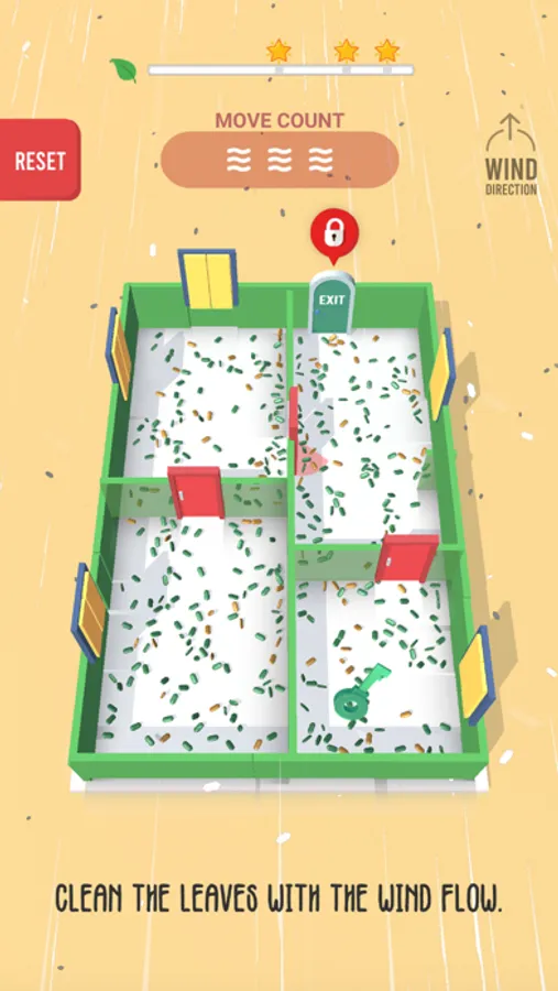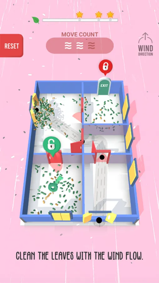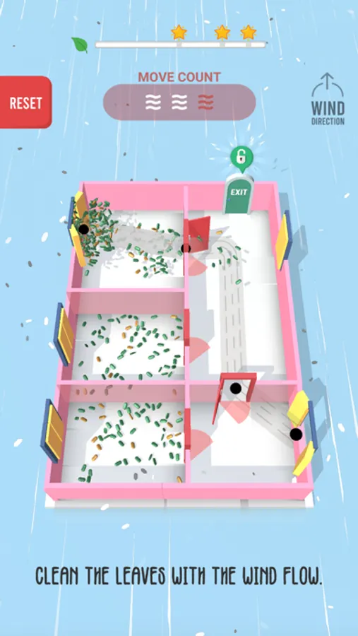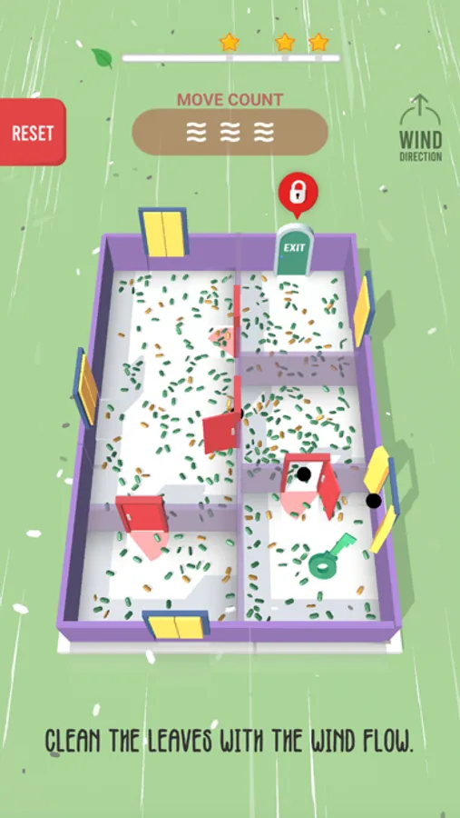 Wind Flow Puzzle: Solve puzzle by opening and closing doors and windows and clean leaves!