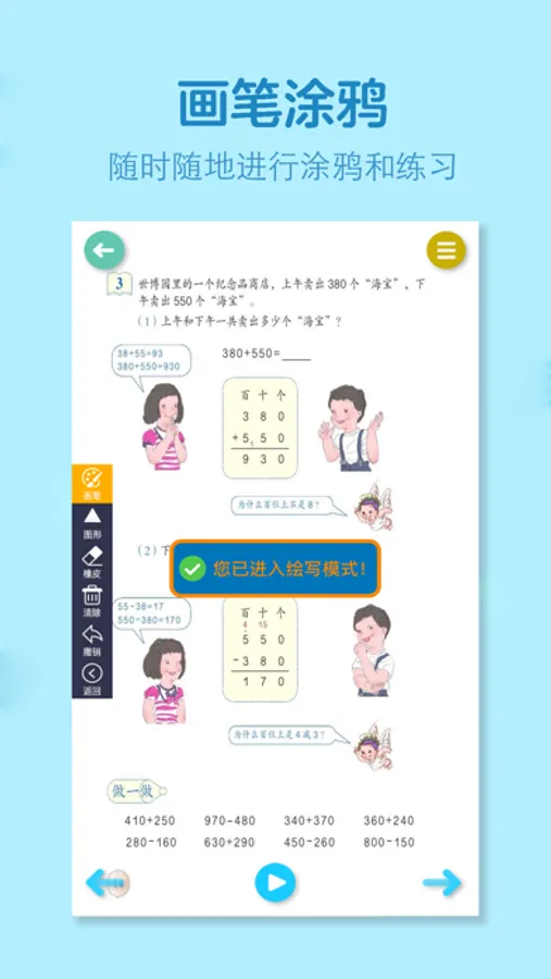 【2】画笔功能,全屏涂鸦让学习更加的有趣让学习更加高效率。完全同步最新发行教材,绝无缺漏页现象。