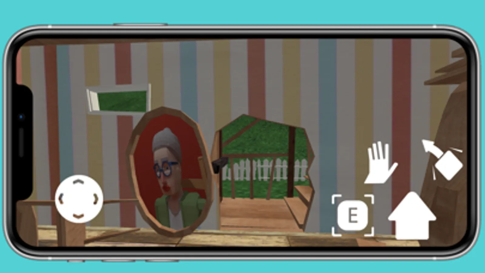 As the granny explores the neighbor's house, she must not be spotted by the neighbor, or she will be chased down and, if the grandma is not quick enough to escape, caught.