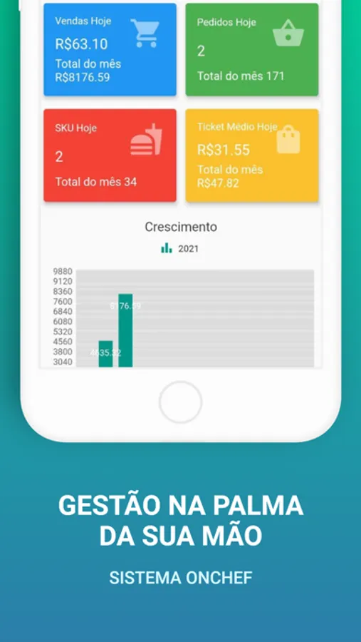 Chef Manager é um aplicativo DashBoard voltado para clientes dos sistema OnChef. Onde conseguem visualizar os resultados de vendas das suas empresas através de gráficos intuitivos na palma da mão e em tempo real.