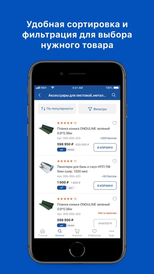 Используя мобильное приложение, вы получаете доступ к каталогу с актуальным списком материалов и ценами. Это более 25000 различных товаров для строительства и ремонта: крепеж, краска, строительные сухие смеси, гипсокартон, утеплители, электроинструменты и другие необходимые материалы для строительства и ремонта.