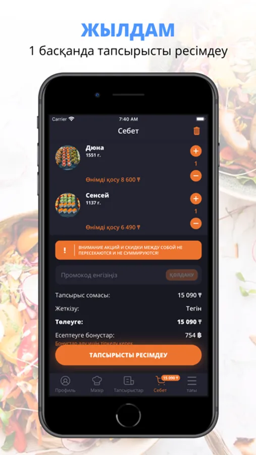 Скачивайте наше приложение, оформляйте заказ и наслаждайтесь любимой едой, где бы Вы ни были! Приятного аппетита!