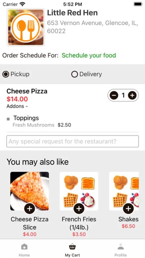 2. Little Red Hen is going digital now and has it's own online ordering app. If you want to order delicious food from us, just download our app and place order in 3 quick steps. Build your order just the way you like it or choose one of our combo from the menu. Add items from the rest of our robust menu. And with the order Tracker ® you can follow your order from the moment you place it until it’s out for delivery, carryout or pickup.