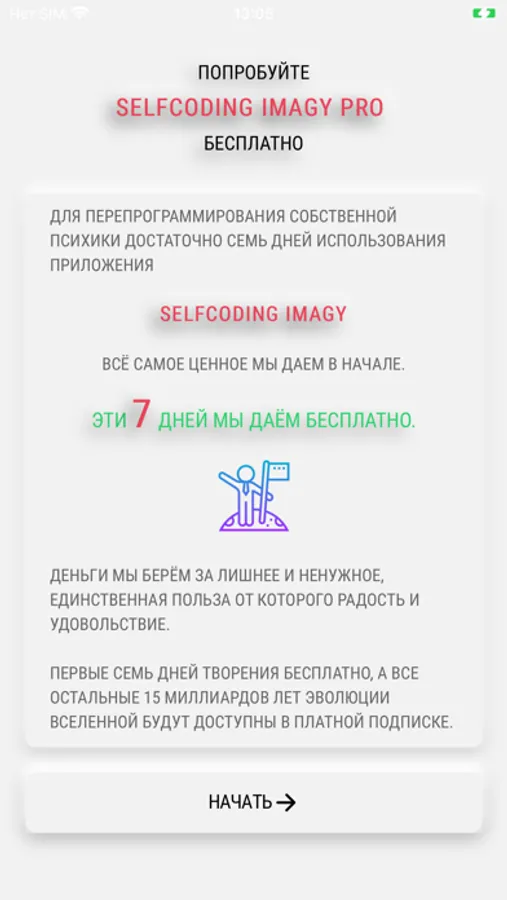 Инструмент Imagy изначально совершенно бесполезен и бесплатен, но согласно философии синтализма бесполезное есть форма, чьё содержание есть совершенство полезного. Бесполезное есть гипотеза о пользе. Поэтому каждый сам может найти или не найти в Imagy свою субъективную пользу. Найдёшь пользу – хорошо. Не найдешь - тоже не плохо. Польза у каждого своя. Польза - понятие субъективное. Смысл в том, что спасение утопающих - дело рук самих утопающих, а красота в глазах смотрящего. В бесплатной версии приложения Imagy пользователь получает ограниченный доступ к содержанию системы. Если, используя бесплатную версию Imagy, ты найдёшь для себя достаточно пользы, то можно будет перейти на платную версию приложения. В платной версии Imagy ограничения по доступу к контенту снимаются на период действия подписки.