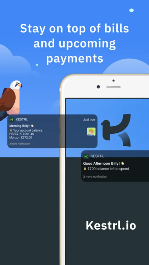 - Stay on top of bills and upcoming payments. Kestrl keeps an eye on your regular payments, helping you avoid overdrafts and useless subscriptions.