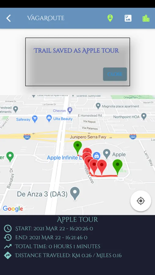 App di tracciamento percorsi con localizzazione in tempo reale, adatta per chi ama salvare i propri percorsi di trekking, tour in bicicletta, moto, macchina. Supporto per il salvataggio dei percorsi sul proprio telefono/tablet e condivisione dettagliata tramite Google Earth, previsioni meteo con ricerca in tutto il mondo in tempo reale. Comoda e utile per chi ama viaggiare e tenere traccia dei luoghi visitati da condividere con chi vuoi. Vagabondo è stata concepita per essere eseguita su device di nuova generazione dando comunque la possibilità di poter funzionare anche su telefoni di versioni datate, requisiti permettendo.