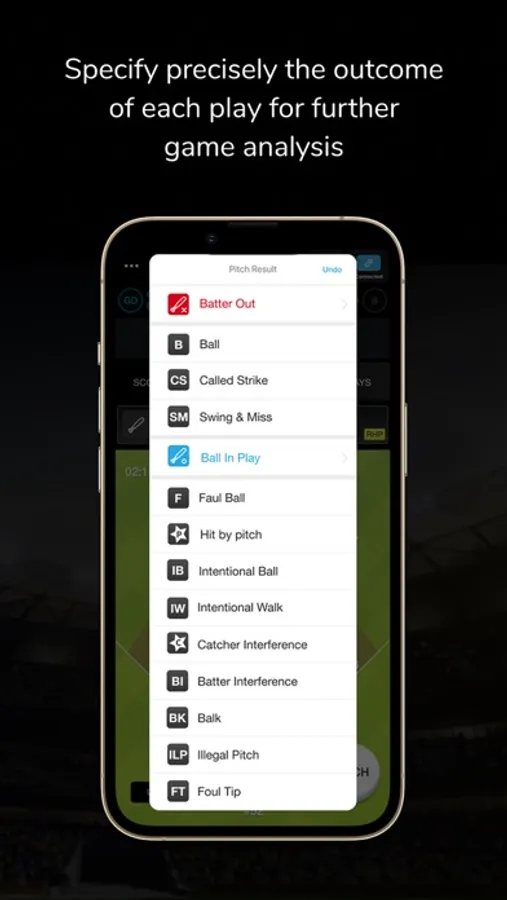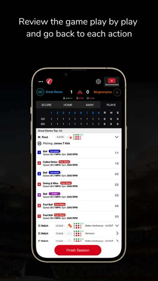 FS StatGrab Baseball allows the user to specify the pitch type and result of each play for further game analysis. Users can review the box score pitch by pitch to see precise moments of action during and after the game.